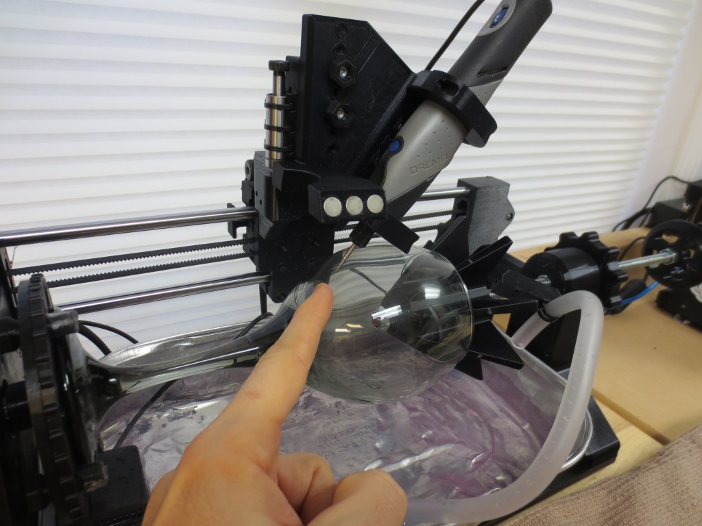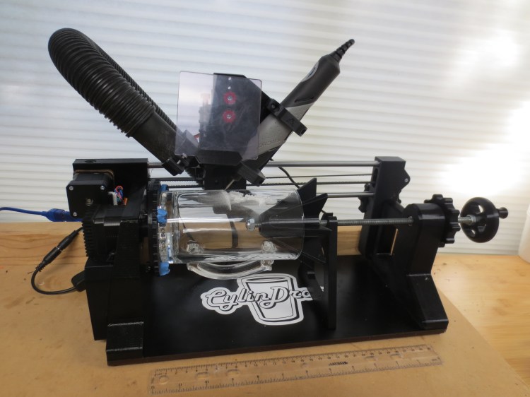 CylinDraw: Mechanical engraving is a cleaner process since fumes and fire are not a factor. The physical byproduct is microparticles which can be safely contained with a steady flow of water or a shop vac. CylinDraw can readily accommodate either option. (Winner CylinDraw)