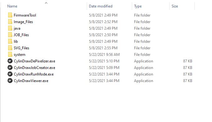 The CylinDraw Control Suite is a set of executable programs packaged together as a zip file. Simply download the appropriate version and extract it anywhere you want.