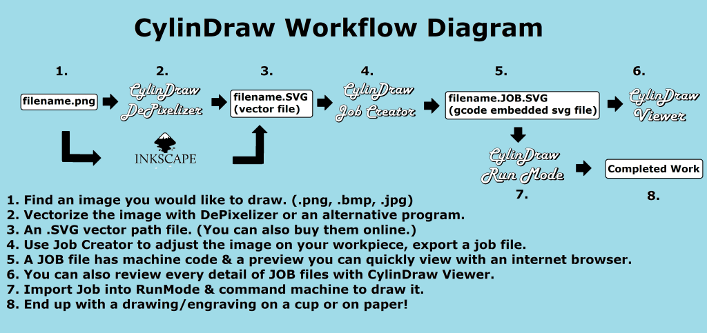 What we refer to as JOB files are actually g-code embedded svg files (Pokemon_Example.JOB.svg). Because they are svg files they can be viewed as thumbnails by windows so you can quickly see exactly what jobs you have saved. Also notice the words and cup silhouette around the images that provide extra context for the job.